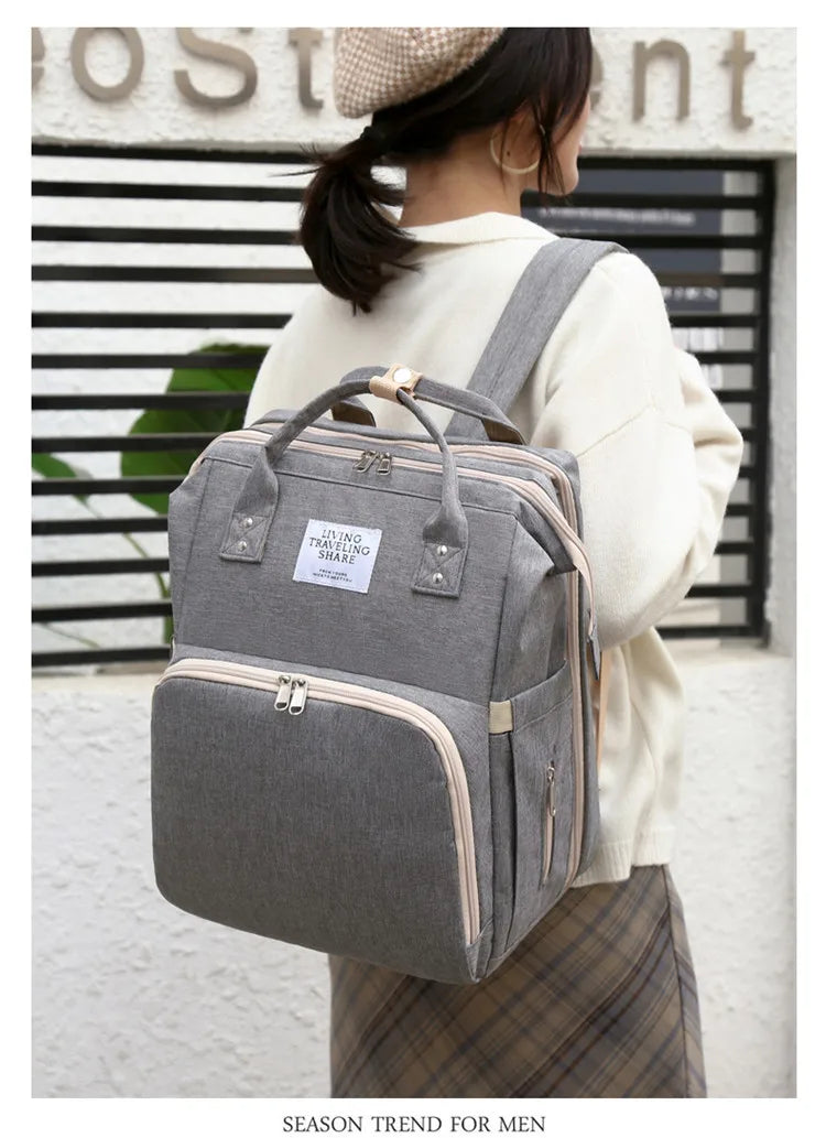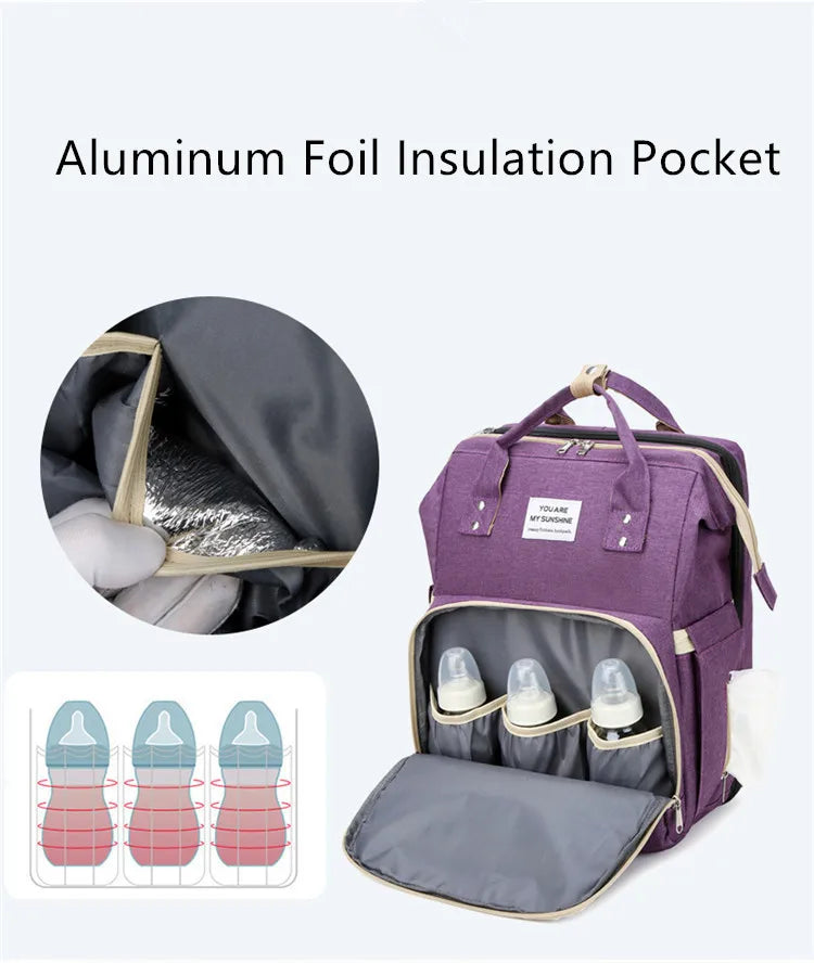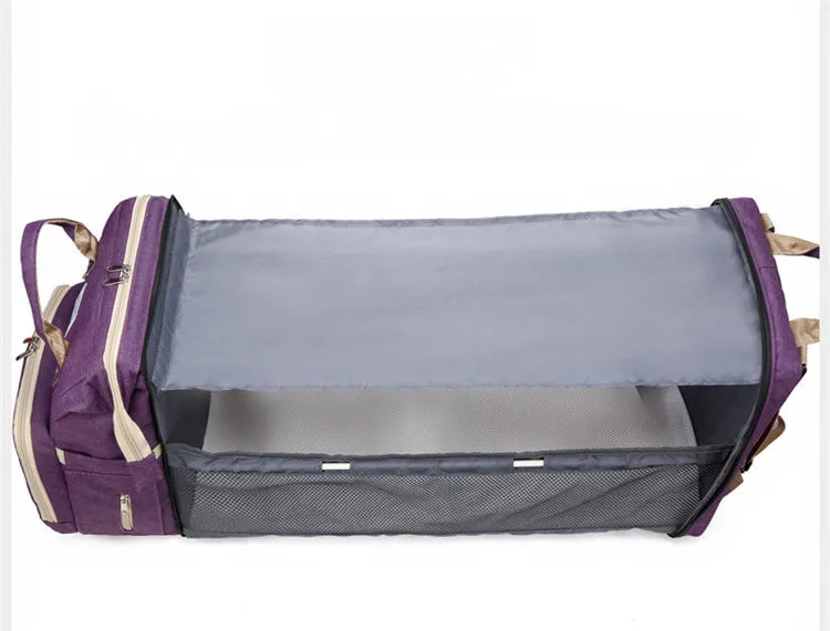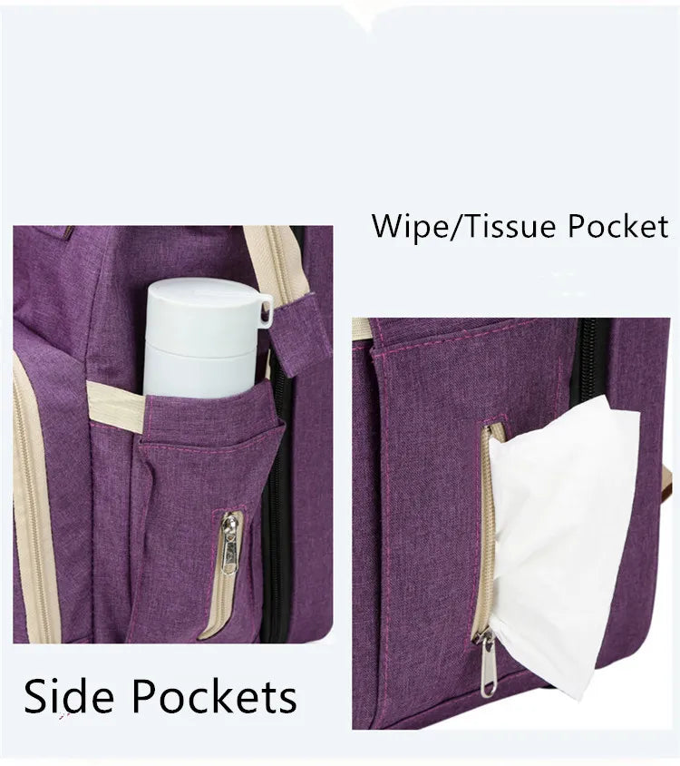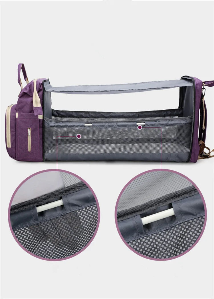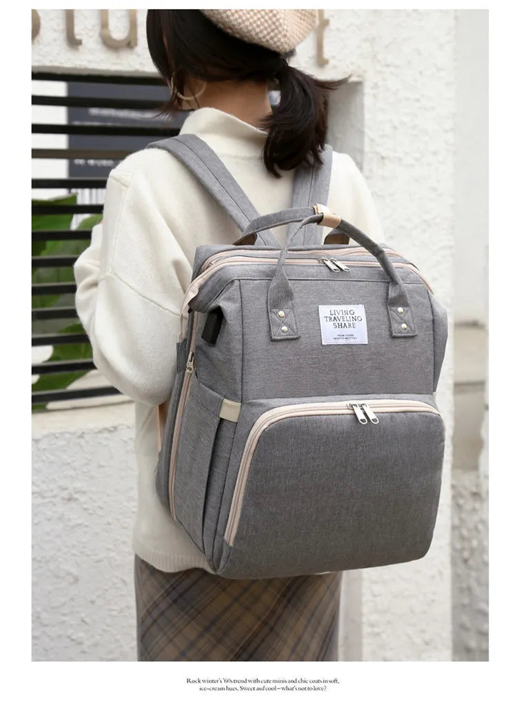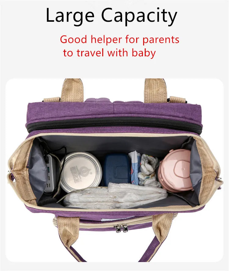 ÇOK İŞLEVLİ: Bebek bezi sırt çantası, beşik, güneşlik kumaş ve telefonunuzu şarj etmek veya şişe ısıtıcısı olarak kullanmak için USB arayüzü.